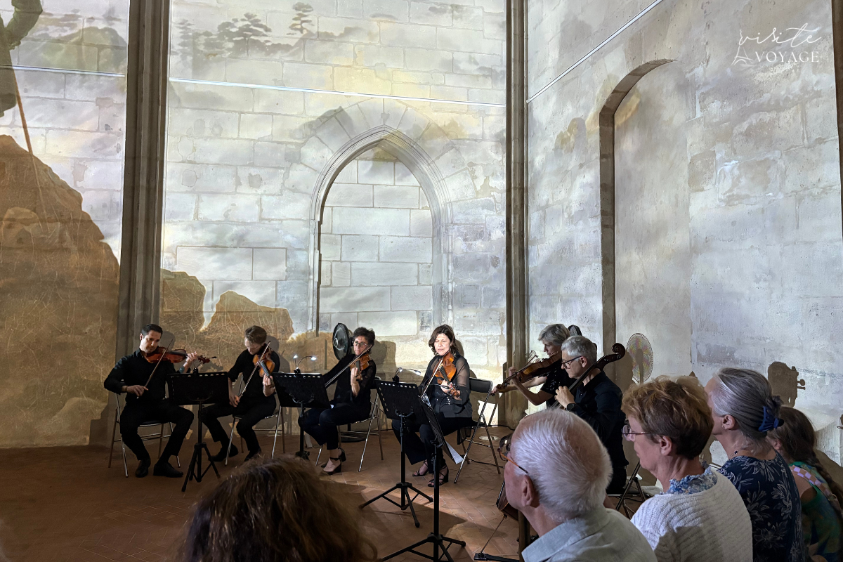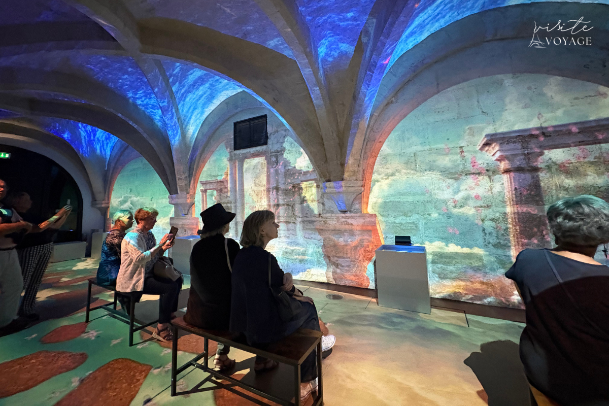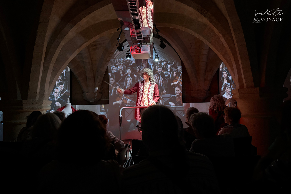 Há uma sala deslumbrante com projeções visuais mapeadas nas paredes, que transformam a arquitetura gótica do mosteiro em uma pintura viva. A música toca, as luzes dançam e você sente que está dentro da alma de Mozart.