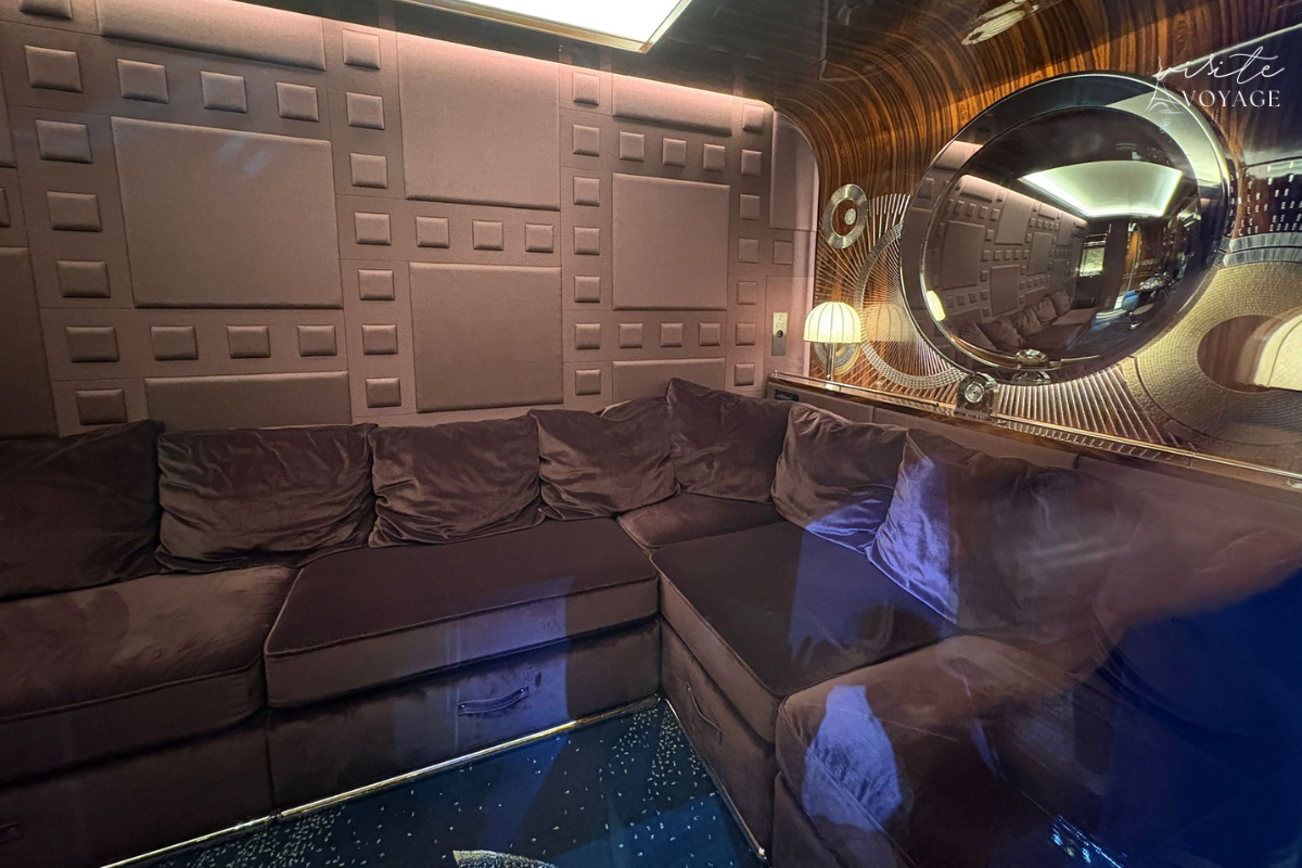 Diferente das cabines tradicionais, aqui você tem mais espaço, mais conforto e mais sensação de “hotel de luxo”. As fotos mostram ambientes com camas grandes, áreas de estar e decoração refinada.