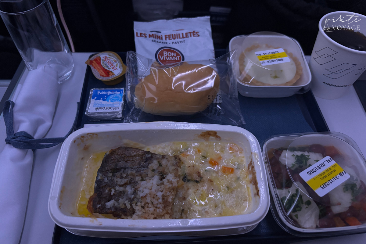 O serviço de bordo na Premium Economy Air France também se destaca. Há mais variedade de alimentos e bebidas, além de uma apresentação cuidadosa e organizada.